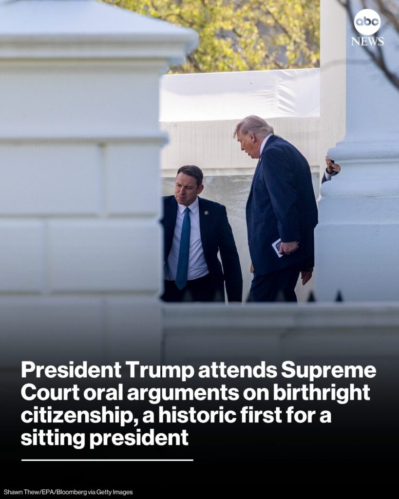 Trump, in historic first, attends Supreme Court arguments on birthright citizenship